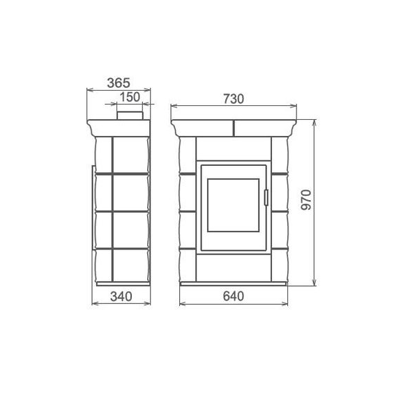 • Прямоугольная отопительная дровяная печь с дверцей и стеклом