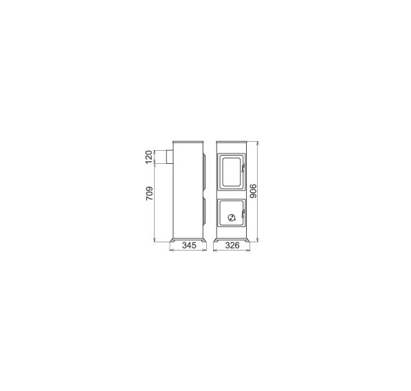 - Отличительная особенность - стеклокерамическая дверца топки и опорные ножки
