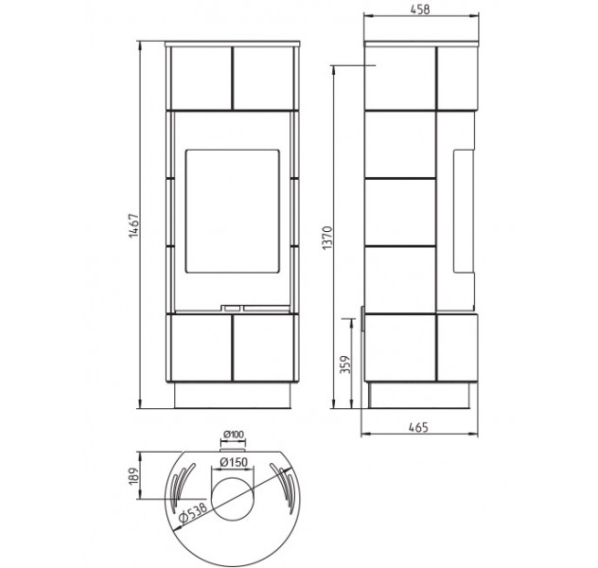 2 аккумулирующих боковых камня и 2 кольца сверху.