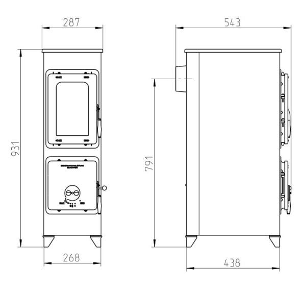 - Дверь, дверные рамы и верхняя пластина печи изготовлены из чугуна