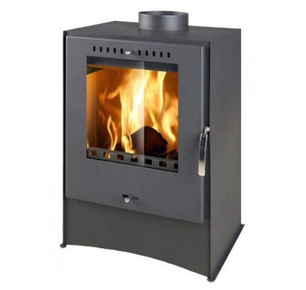 Дровяная отопительная печь с дверцей и стеклом.
