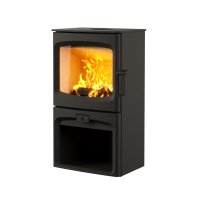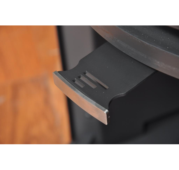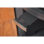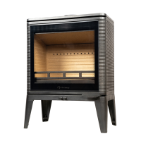 - Дверца печи облицована тонированной стеклокерамикой - огонь отлично виден сквозь черную рамку, а зольный ящик, наоборот, скрыт от глаз. Удобная вертикальная ручка не нагревается и позволяет получить доступ к топочной камере без усилий.