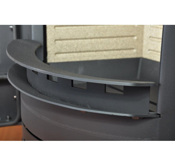 - Печь соответствует всем актуальным экологическим требованиям. Топка, футерованная шамотом, закрывается герметично. Встроенная система двойного дожига позволяет легко контролировать интенсивность работы прибора. Объемный купол в верхней части топочной камеры собирает и перенаправляет печные газы для более полного сгорания. Таким образом производителю удается добиться высокого КПД, а для большего комфорта и безопасности при эксплуатации печи есть возможность организовать подвод воздуха на горение извне - это особенно актуально для энергосберегающих домов и помещений с недостаточной вентиляцией.