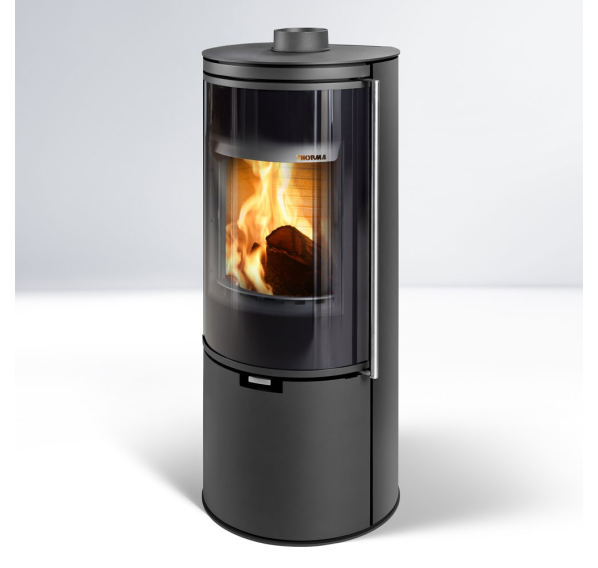 Круглая печь-камин Toledo от словацкого бренда Thorma с дверцей, облицованной стеклокерамикой - это яркая доминанта любого интерьера. Изящный стальной корпус, покрытый термостойкой эмалью глубокого черного цвета, выгодно оттеняет горящее в топке пламя, которое можно увидеть в полном размере практически с любого ракурса, ведь не только дверца, но и стекло изогнуты. Данная печь отлично впишется в современный интерьер и за счет своей формы не займет много места. Поставьте ее в угол, у стены или даже в центре комнаты - дымоход выводится сверху, так что монтаж не доставит особых хлопот.
