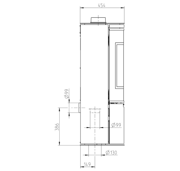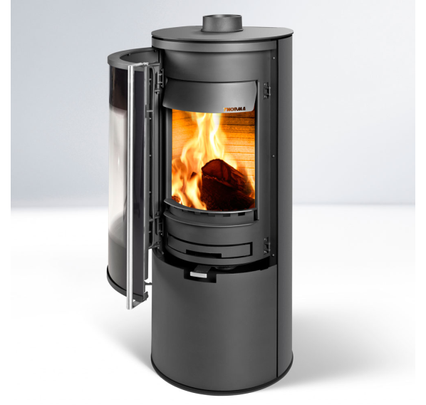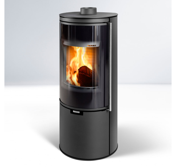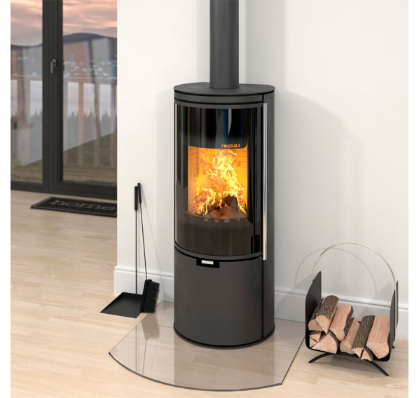 Конструкция и дверца печи имеют стильную округлую форму, которая формирует потрясающую панораму на пламя. Облицовка выполнена из керамики черного цвета. Печь снабжена первичной и вторичной подачей воздуха, которые пользователь может регулировать самостоятельно, а также третьим каналом подачи кислорода для оптимального горения.
