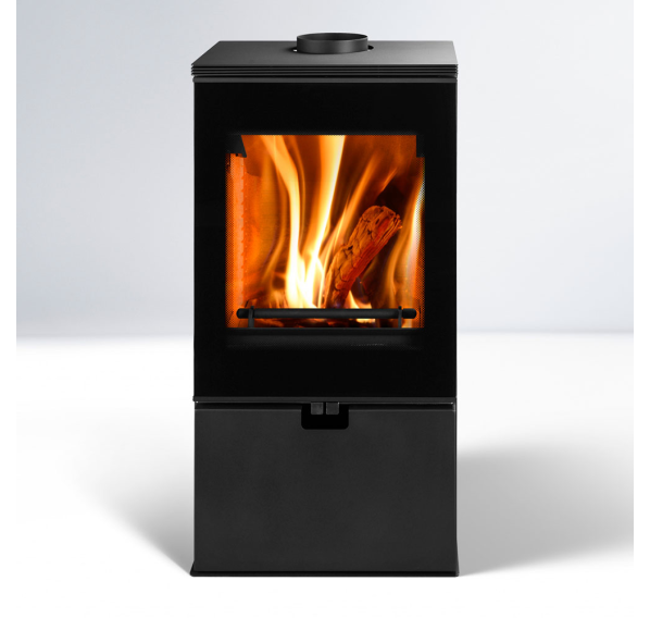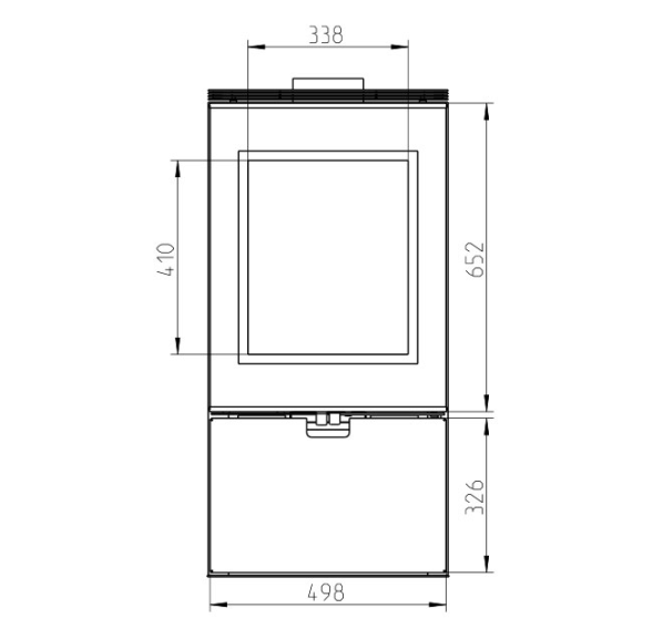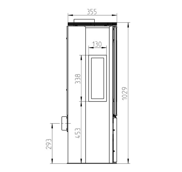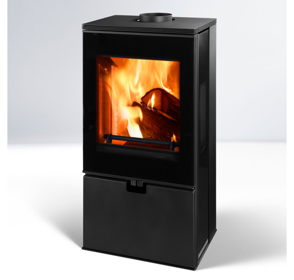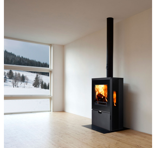 - Прямоугольная дверца со стеклом, занимающая больше половины площади передней панели, обеспечивает шикарный вид на пламя, который прекрасно дополняют боковые стеклянные вставки. За счет такого сочетания корпус кажется визуально более легким.