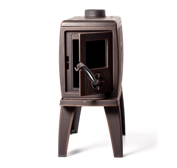 Чугунная печка Zeige снабжена большой толстостенной топкой из хромистого чугуна, легко вмещающей до 4 кг дров длиной до 45 см, и способна поддерживать горение продолжительностью до 10 часов благодаря системе подового горения. Верхняя часть печи представляет собой полноценную варочную поверхность, на которой можно разогреть или приготовить несложные блюда. Управлять горением легко с помощью удобной круглой задвижки, расположенной непосредственно на дверце.