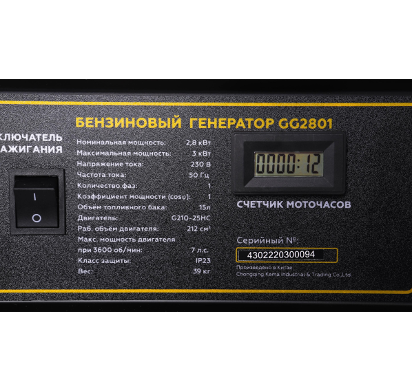 | Номинальная мощность генератора: |