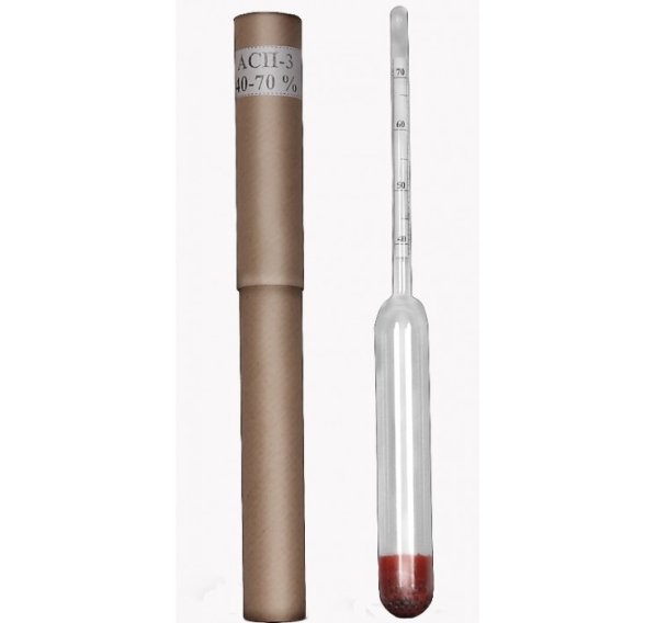 Лабораторный ареометр-спиртометр предназначен для измерения концентрации этилового спирта в водно-спиртовых растворах от 40% - 70%.