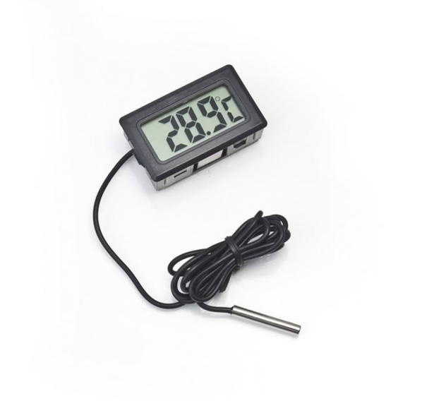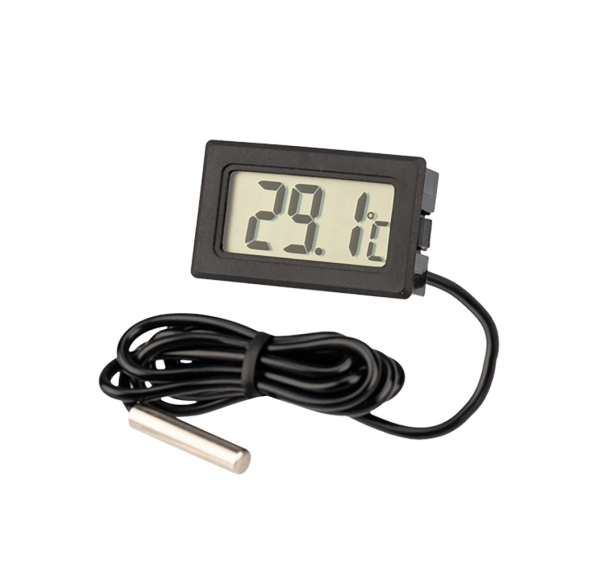 Термометр цифровой с выносным датчиком HY-10 предназначен для измерения температуры в помещении или на улице, применяется также в холодильниках, морозильниках, инкубаторах, квартирах, теплицах, а также используется для контроля температуры брожения браги. Оснащён выносным датчиком и имеет простой и легко читаемый дисплей. Маленький размер, удобен и прост в использовании. Температурный диапазон измерения: от -50°С до +80°С, длина кабеля (датчика): 1 м.