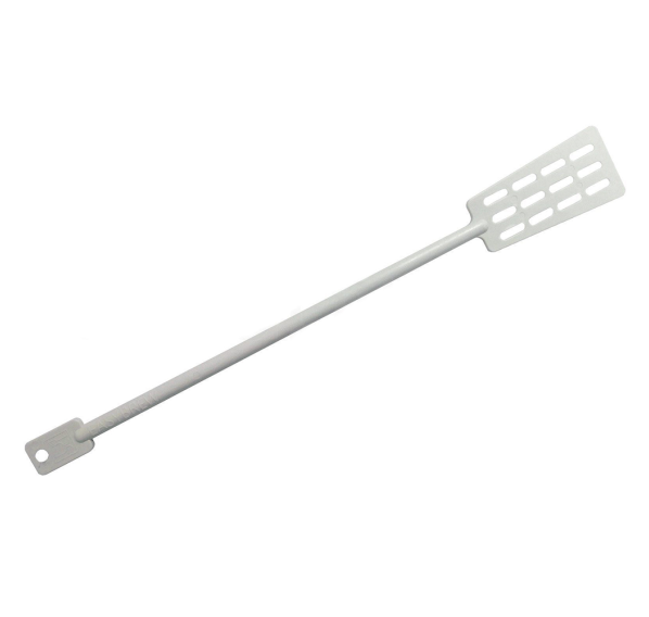 Лопатка с прорезями для удобства при размешивании солода, сусла. Преимущество пластиковой лопатки очевидно — она не поцарапает ферментёры, как металлическая. Лопатка-мешалка пластиковая легко дезинфицируется и не впитывает посторонние запахи.