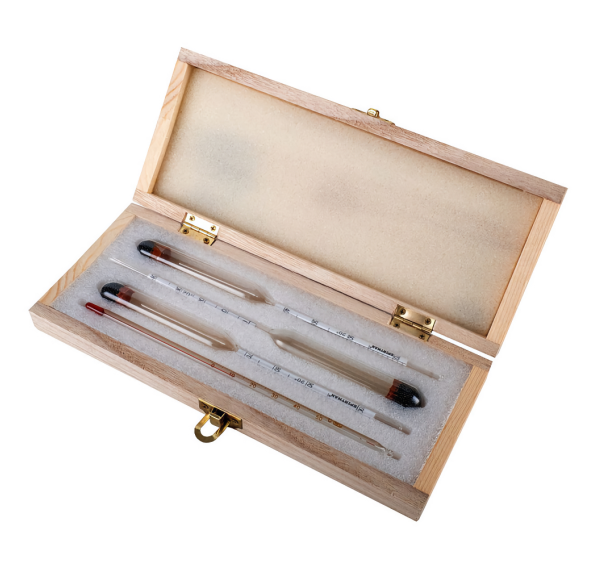 Набор спиртометров служит для измерения крепости самогона, дистиллятов, водки, определения процентного содержания спирта в водно-спиртовом растворе, как для лабораторного, так и для домашнего использования. Диапазон измерения объёмной доли спирта: 0–40%, 40–70%, 70–100%. Спиртометры откалиброваны под работу при температуре жидкости +20°C. При исследовании жидкостей другой температуры, входящий в комплект термометр помогает учесть температурную поправку.