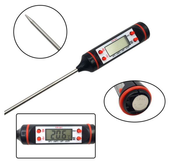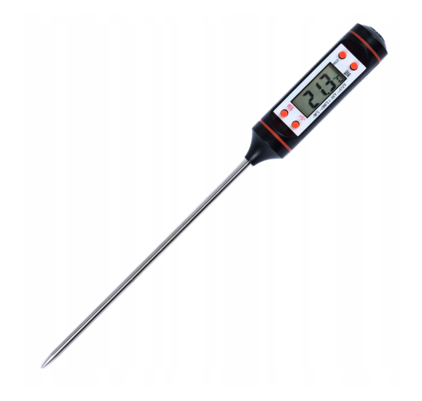 Цифровой термометр с длиной щупа 14 см и со встроенным ЖК-дисплеем предназначен для измерения температуры жидкостей, пищи, почвы и прочих субстанций. Диапазон измеряемых температур от -50 до +300°C.