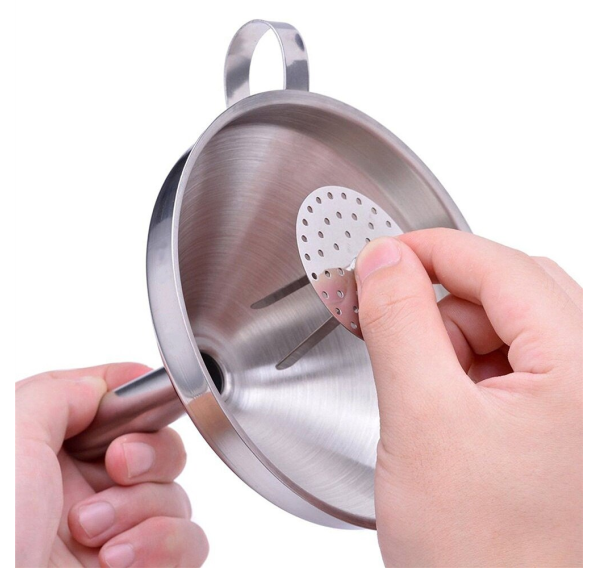 Воронка из нержавеющей стали обеспечивает быстрый и чистый перелив жидкости, избавляя Вас от риска испачкаться, а специальный материал, применяемый при изготовлении данной воронки, гарантирует возможность работы с любыми жидкостями. Главным преимуществом воронки является съёмный фильтр, который легко моется после использования.