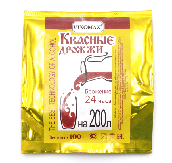 Упаковка дрожжей рассчитана для сбраживания 200 л квасного сусла (4-6 кг сахара) в течение 24 часов при температуре 26-28°C.