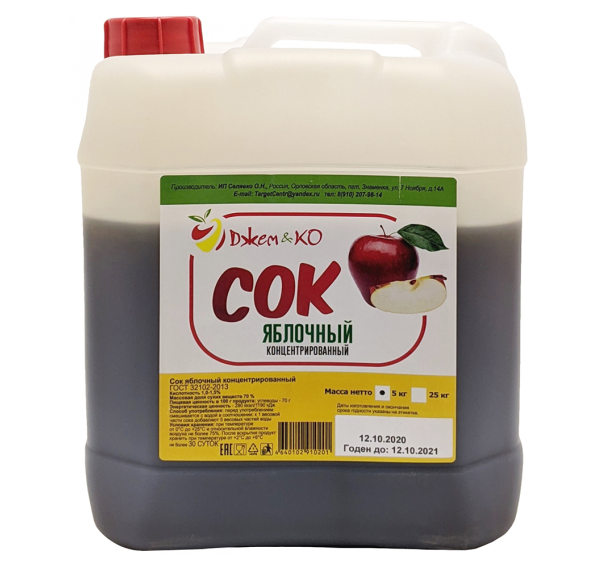 100% натуральный концентрат яблочного сока. Великолепно подходит для приготовления яблочного вина, кальвадоса, сидра, ликёра и других напитков, а также для безалкогольных напитков.