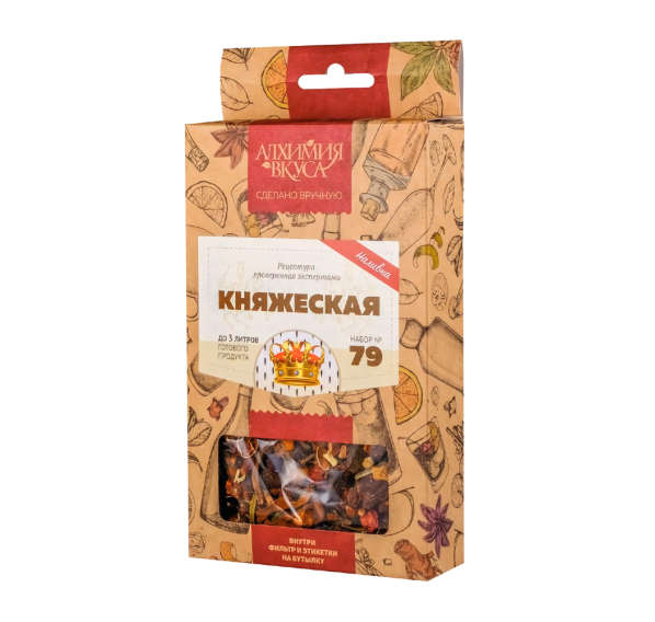 Облепиха сушёная, клюква сушёная, рябина сушёная, можжевеловая ягода, кора дуба, зверобой, кориандр, корица дроблёная, полынь, перец чёрный, кедровая скорлупа, цедра лимона, цедра апельсина, мята перечная резаная лист, мелиса, анис, валериана корневища.