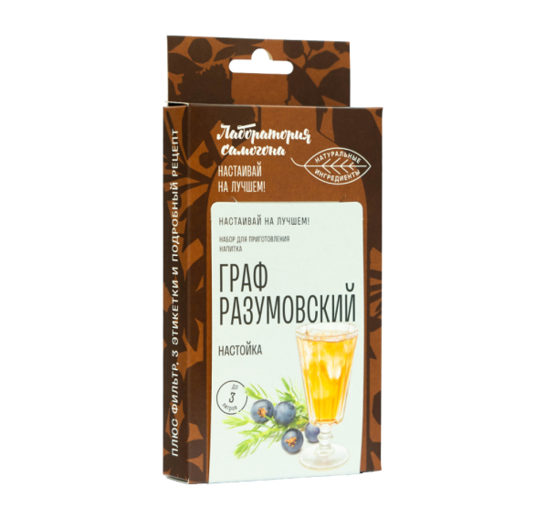 Настойка, приготовленная с применением трав и специй набора "Граф Разумовский" — это прекрасный пряный напиток с травянистым ароматом, нотами натурального мёда и слегка обжигающим вкусом. С напитком, приготовленным при помощи данного набора трав, о простуде можно забыть. Мята и имбирь укрепит иммунитет, можжевельник остановит воспалительные процессы, а липа успокоит.