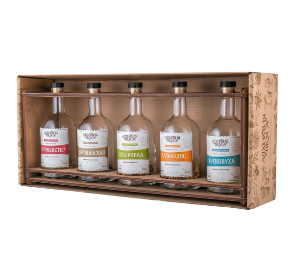 Подарочный набор "Алхимия вкуса" — это набор, который представляет собой идеальный подарок для любителей вкусных алкогольных напитков. Набор позволяет создавать настойки на водке, самогоне или спирте в домашних условиях.