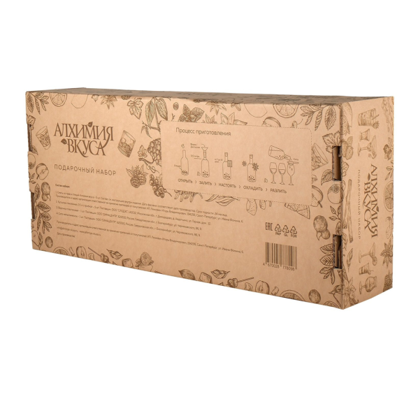 Подарочный набор "Алхимия вкуса" — это набор, который представляет собой идеальный подарок для любителей вкусных алкогольных напитков. Набор позволяет создавать настойки на водке, самогоне или спирте в домашних условиях.