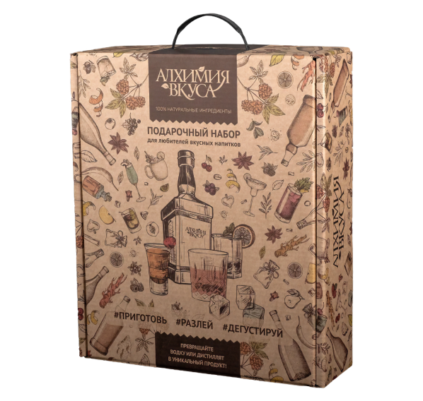 Подарочный набор "Алхимия вкуса" — это набор, который представляет собой идеальный подарок для любителей вкусных алкогольных напитков. Набор позволяет создавать настойки на водке, самогоне или спирте в домашних условиях.