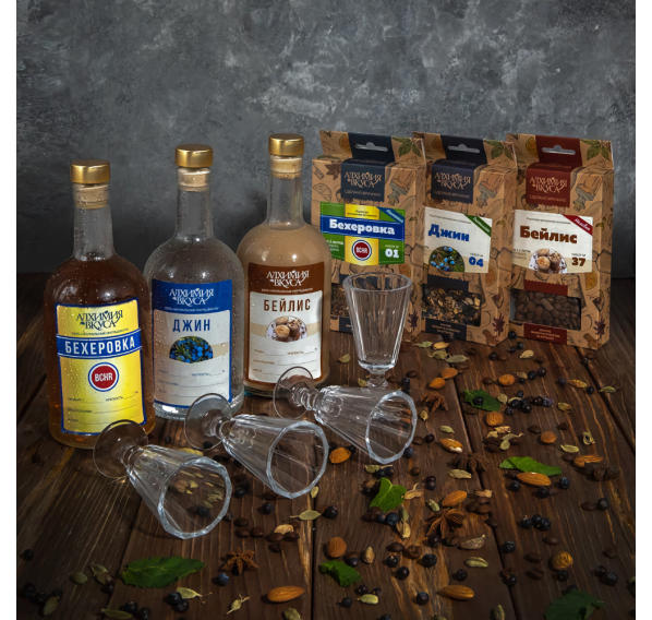 Подарочный набор "Алхимия вкуса" — это набор, который представляет собой идеальный подарок для любителей вкусных алкогольных напитков. Набор позволяет создавать настойки на водке, самогоне или спирте в домашних условиях.