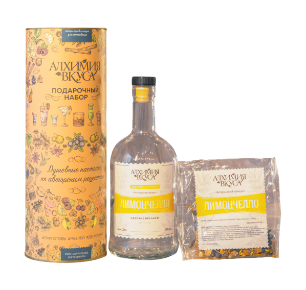 Подарочный набор "Алхимия вкуса" — это набор, который представляет собой идеальный подарок для любителей вкусных алкогольных напитков. Лимончелло — итальянский ликёр со вкусом сочных лимонов и терпкой горечью цедры, дополненный ароматом мягкой ванили.