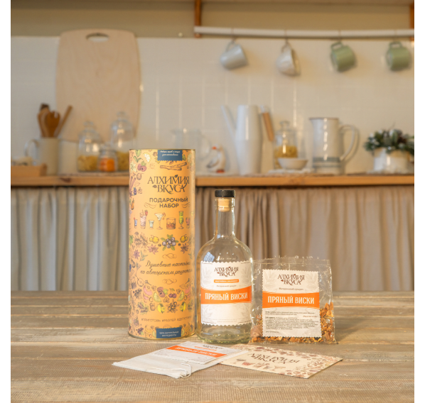 Подарочный набор "Алхимия вкуса" — это набор, который представляет собой идеальный подарок для любителей вкусных алкогольных напитков. Пряный виски — напиток, объединяющий в себе классический букет выдержанных зерновых дистиллятов и ароматные специи.