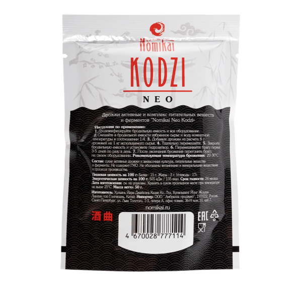 Спиртовые дрожжи Nomikai Kodzi Neo являются отличным решением для новичков, а также опытных винокуров, которые ищут надёжные и универсальные спиртовые дрожжи. Nomikai Kodzi Neo — это сублимированная смесь спиртовых дрожжей, витаминов, питательных солей и специальной заквасочной плесневой культуры, содержащая всё необходимое для холодного осахаривания браги и сбраживания любого крахмалосодержащего сырья. Особенностью дрожжей Nomikai Kodzi Neo является их высокая эффективность при осахаривании, а также отсутствие в необходимости предварительного распаривания сырья.