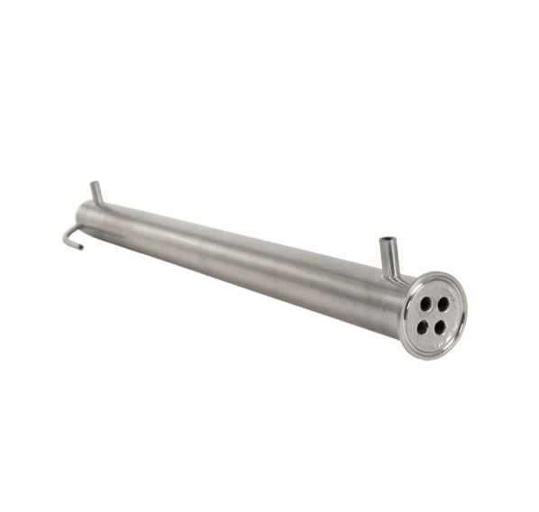 Холодильник 35 см для кламп соединения 1,5" работает таким образом, что пары спирта проходят через 4 трубки внутри кожуха, а в пространстве между трубками и кожухом циркулирует охлаждающая жидкость. Таким образом, основным преимуществом кожухотрубного дистиллятора 1,5" является очень большая производительность, достигаемая благодаря тому, что пары спирта очень эффективно охлаждаются.