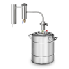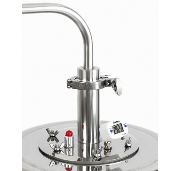Самогонный аппарат «Феникс-Мечта-New» в линейке «Феникс» стал ещё лучше! Увеличенный холодильник способен утилизировать пар на 30% быстрее. На смену биметаллическому термометру пришёл электронный, а значит, что точность измерений стала выше. Мини-царга служит переходником с фланцевого крепления перегонного куба «Феникс» под кламповое соединение диаметром 1,5". Вы можете модернизировать свой самогонный аппарат, превратив его в полноценную колонну. Докупать новый куб не придётся! Также в царгу можно установить РПН для дополнительной конденсации флегмы и очистки самогона. На фланце самогонного аппарата появился клапан сброса давления, который своевременно реагирует на повышение давления. Этот простой в конструкции, но надёжный дистиллятор помещается между плитой и вытяжкой, не занимая много места на кухне и обеспечивая комфортное использование. Вы приготовите крепкий, ароматный и экологически чистый напиток, который украсит Ваш стол.