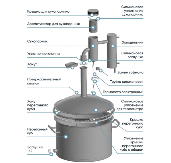 Самогонный аппарат "Германия 4" — новый самогонный аппарат с сухопарником, который имеет огромные возможности для модернизации. Если сравнивать с предыдущей моделью, — абсолютно точно можно сказать, что это новый, а не обновлённый дистиллятор. Здесь переработано всё, начиная от формы, заканчивая крышкой сухопарника и запорным обручем. Каждое изменение нацелено на удобство в использовании и качество продукта.