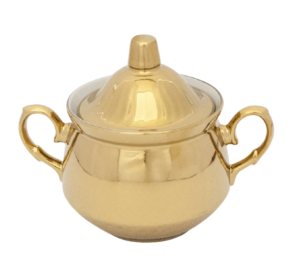Такая сахарница будет отлично сочетаться с самоварами в золотых тонах простого и строгого дизайна.
