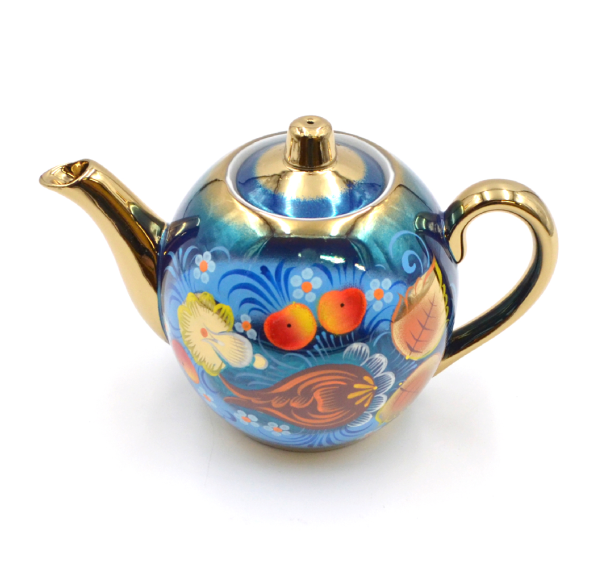 Яркий, броский, расписной набор "Птица на синем", навеянный бабушкиными сказками и летним настроением. Он приятно удивит любого, благодаря детализированному рисунку и органично сочетающейся гамме цветов. Таким рисунком ещё в старину украшали купеческие и боярские дома. Все его предметы обработаны специальным термозащитным лаком для того, чтобы рисунок оставался целым и невредимым. Его не испортят ни постоянное использование, ни время.