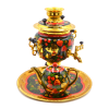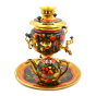 Объём — 3 литра, этого количества вполне хватит на продолжительное чаепитие небольшой компании. Самовар работает от обычной электрической сети. Уход за изделием не сложен, хотя к поверхности росписи необходимо бережное отношение.