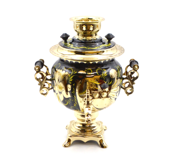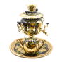 В наборе самовар электрический и классической формой корпуса, а также круглый, как солнце, поднос и изящный чайник для заварки. Шикарный набор, который может стать идеальным подарком на какое-либо торжественное событие. Эксклюзивная ручная роспись придает строгим формам набора светского шарма. А безупречное качество покрытия позволит Вам любоваться рисунками много лет.