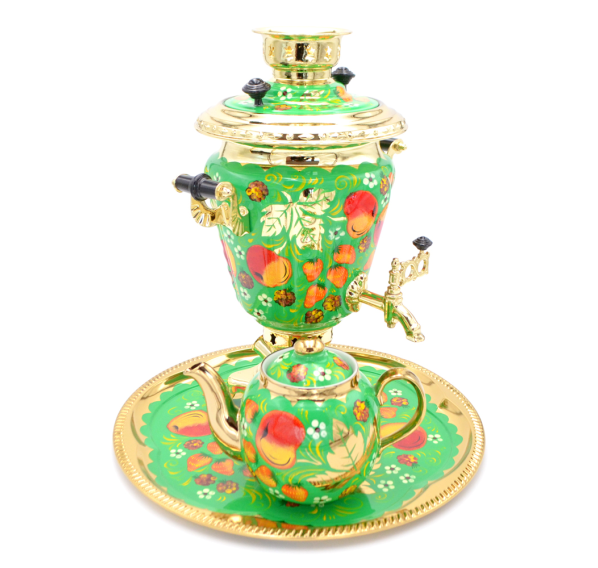 Самовар с заварочным чайником и подносом займет центральное место на столе, где будет собираться Ваша семья. Функциональный набор позволяет быстро организовать чаепитие для компании, приятные бонусы — способность долго сохранять тепло. Отличие набора «Яблоки» — наличие народного узора, отражающего русские традиции. Расписной самовар приятно дарить, особенно заграничным друзьям и гостям. Для них это будет диковинно и позволит прикоснуться к русской культуре. Такой подарок никого не оставит равнодушным и идеально подойдет для любого события. Полезно приобрести такой самовар и для своего дома, это станет началом традиции долгих семейных чаепитий.