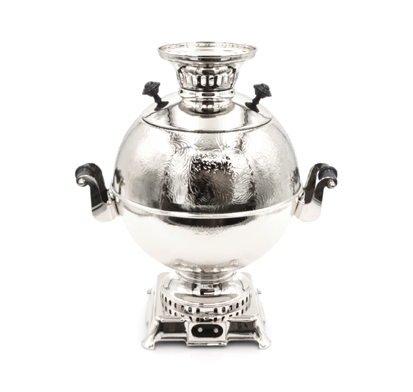 Завораживающий серебряно-зеркальный блеск, оригинальная сферовидная форма, интересная фактура и ажурные элементы — это электрический самовар "Шар" 5 л. Красавец изготовлен руками искусных мастеров на современном тульском заводе методом холодной штамповки. Несмотря на самобытный дизайн, самовар обладает наилучшими характеристиками современного изделия.