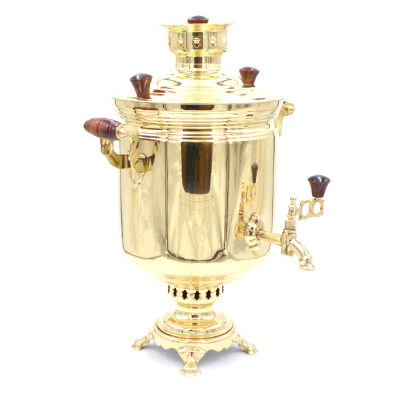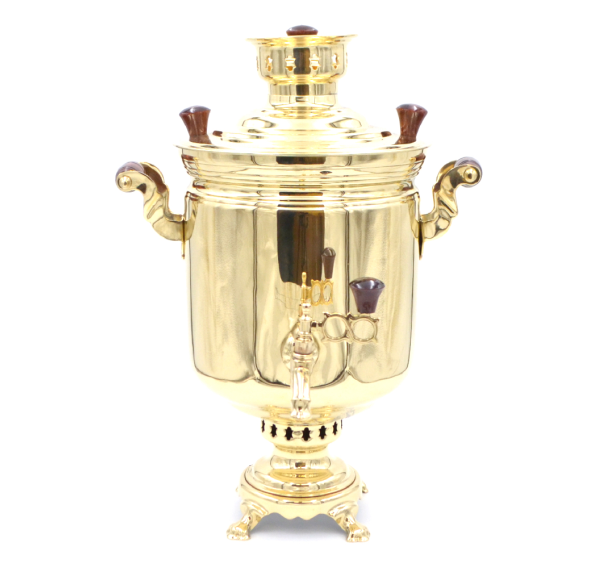 Самовар снабжён жаровней и ТЭНом. Его можно топить щепками или греть от электричества, что делает модель универсальной. Комбинированный самовар, с деревянными ручками — удобный в использовании, подходит тем, кто любит проводить время за беседой с чашечкой ароматного чая.