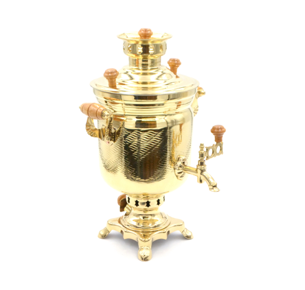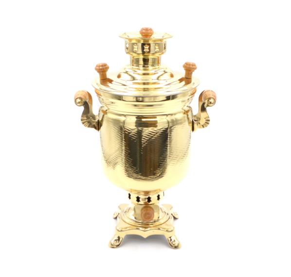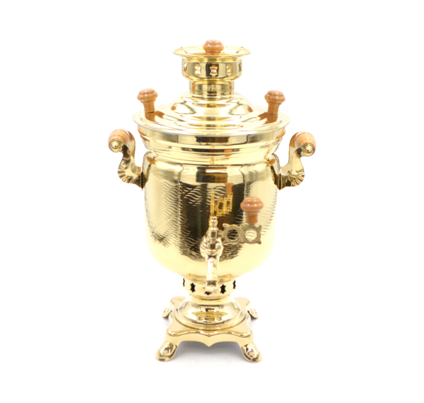Самовары в форме банки издревле использовали наши предки. Они знали толк в чайном искусстве, передавая из поколения в поколение секреты приготовления ароматного напитка. И сегодня любители чайных церемоний охотно заказывают эти небольшие, но функциональные приборы. Достаточно взглянуть на своё отражение в гладкой латунной поверхности корпуса — и праздничное настроение обеспечено. Внешне самовар достаточно прост в исполнении и лаконичен, и в этом есть своя прелесть. Смотрится такой прибор солидно, и может претендовать на роль главного аксессуара на любом застолье. Пузатый бочонок украшен фурнитурой из массива бука, что придает ему особое очарование.