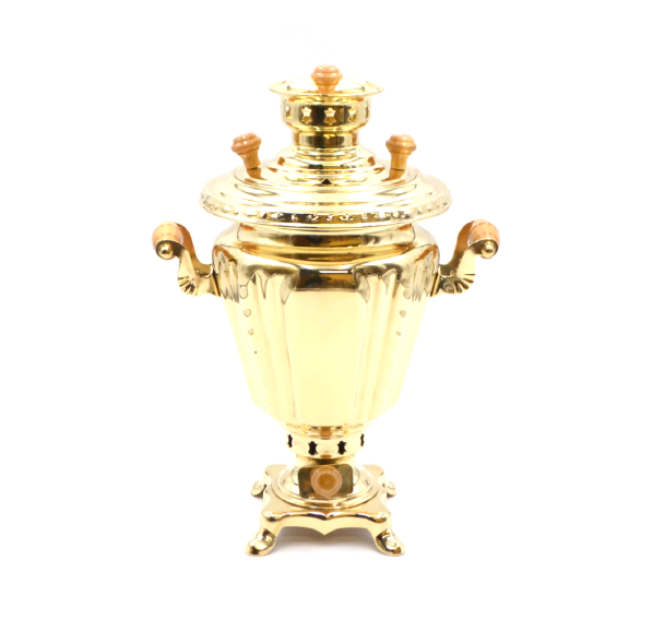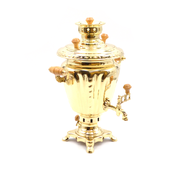 Самовар объёмом 3 л выполнен в традиционной форме рюмки. Его витые грани на корпусе словно колонны возвышаются к фигурному борту, украшенному горошинами и ромбами. Чай с пользой для здоровья! Жаровый самовар "Рюмка с гранями" изготовлен из высококачественной латуни. Внутри нанесено белоснежное лужение пищевым оловом. Такое покрытие долговечно и безопасно для бытового использования. Ручки обладают не только прекрасными теплоизоляционными свойствами, но и несут на себе эстетический акцент, наполняя весь самовар русским колоритом.