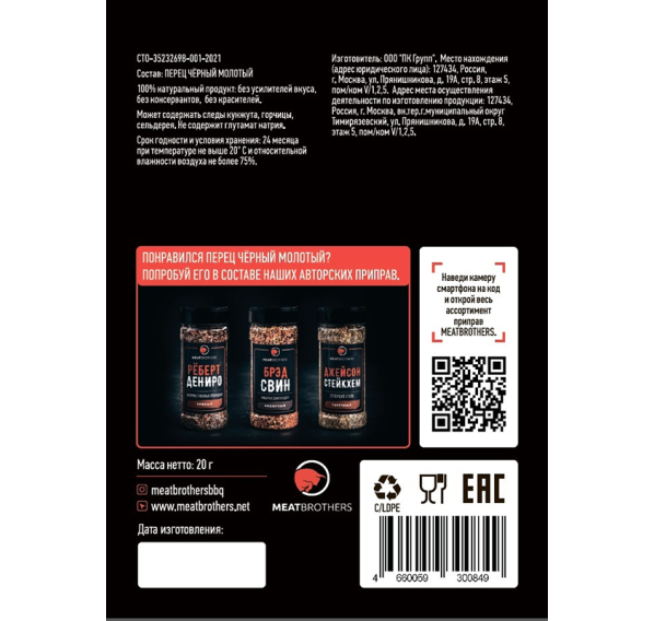 100% натуральный продукт: без усилителей вкуса, без консервантов, без красителей. Перец может содержать следы кунжута, горчицы, сельдерея.