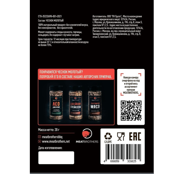 100% натуральный продукт: без усилителей вкуса, без консервантов, без красителей. Чеснок может содержать следы кунжута, горчицы, сельдерея.