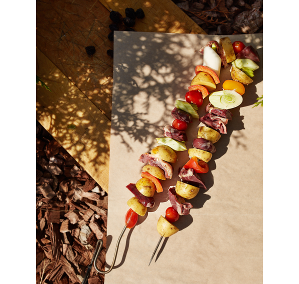 Легко прикрепляется к тандыру. Как правило, на стандартных шампурах возникают трудности с нежными продуктами, такими как грибы, овощи. Мелкие шампиньоны разрываются, соскальзывают. Эти двойные шампуры тонкие как игла (по сравнению со стандартными шампурами) и делают соскальзывание продуктов невозможным. Отлично для запекания креветок, картошки с салом, любых грибов, овощей и других мелких ингредиентов.