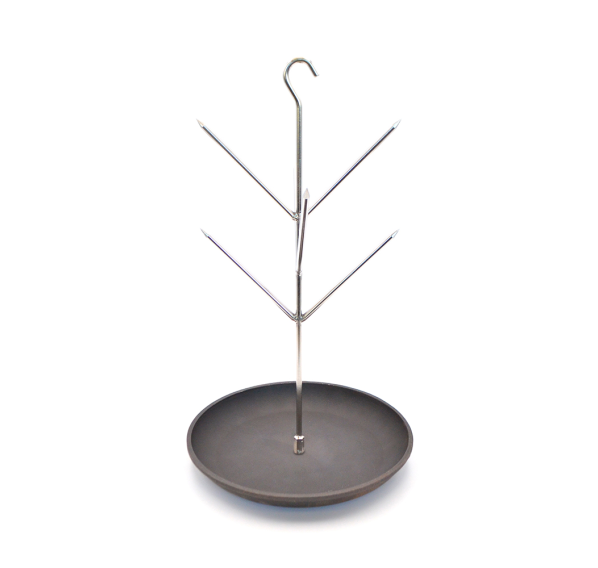 Ёлочка 22 см чугунная с низким бортом имеет крюк для крепления к тандыру, 6 заостренных шипов и чугунную сковороду с низкими бортами для сбора жира/сока, а также конструкция позволяет готовить овощи и грибы, не опасаясь, что они могут соскользнуть и упасть на угли. Просто нарежьте картошку, выложите на сковороду и через 20 минут получите порцию вкусного шашлыка с запеченной картошкой. Ёлочка с чугунной сковородой может служить жароотсекателем, тем самым ёлочка не даст продуктам подгореть. Ёлочка расширит возможности использования тандыра и будет служить долгие годы, радуя Вас и Ваших гостей!