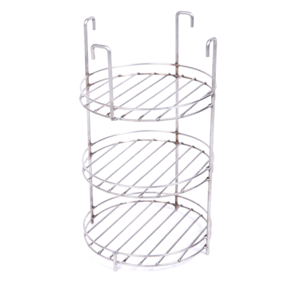 Этажерка способна выдержать большие куски мяса или несколько килограммов овощей. Благодаря внушительной толщине прута и дополнительным бортикам этажерка прослужит гораздо дольше, чем обычная этажерка. Данный аксессуар прекрасно заменит шампуры! Положите нарезанные овощи на верхний ярус, а мясо или рыбу на нижние, и через несколько минут новое блюдо готово!