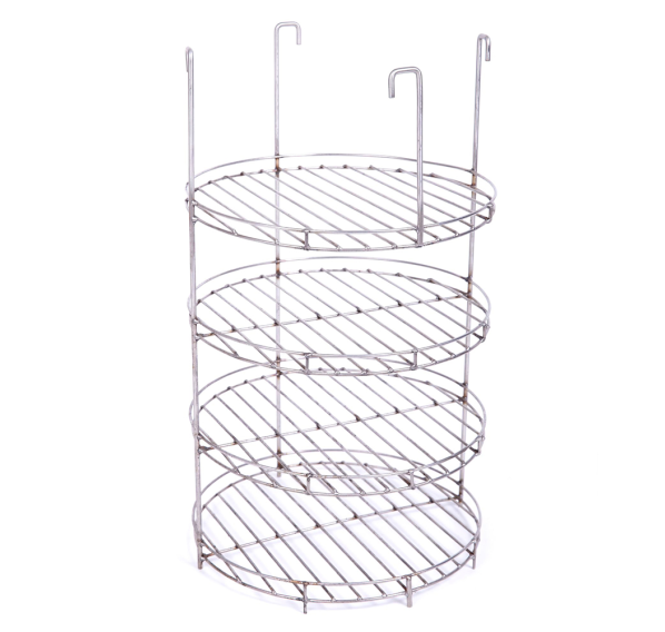 Этажерка на крестовину усиленная 4-х ярусная большая из прута нержавеющей стали толщиной 4 мм с дополнительными бортиками на каждом ярусе.