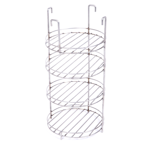 Этажерка способна выдержать большие куски мяса или несколько килограммов овощей. Благодаря внушительной толщине прута и дополнительным бортикам этажерка прослужит гораздо дольше, чем обычная этажерка. Данный аксессуар прекрасно заменит шампуры! Положите нарезанные овощи на верхний ярус, а мясо или рыбу на нижние, и через несколько минут новое блюдо готово!