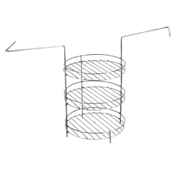 Этажерка способна выдержать большие куски мяса или несколько килограммов овощей. Благодаря внушительной толщине прута и дополнительным бортикам этажерка прослужит гораздо дольше, чем обычная этажерка. Данный аксессуар прекрасно заменит шампуры! Положите нарезанные овощи на верхний ярус, а мясо или рыбу на нижние, и через несколько минут новое блюдо готово!