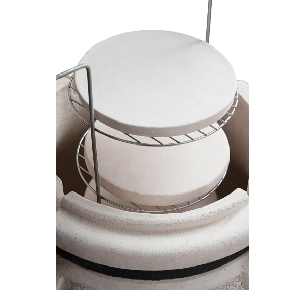 Камень для выпечки размещается на этажерке и позволяет Вам готовить знаменитые лепёшки или пиццу тандыре.